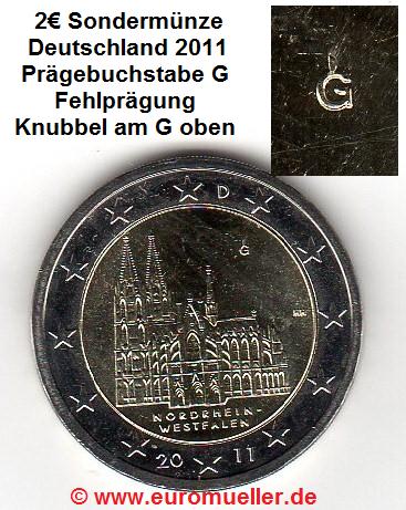 2 Euro Sondermünze Deutschland 2011 G Fehlprägung