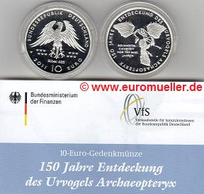 10 Euro Gedenkmünze Deutschland 2011 Urvogel Archaeopteryx PP