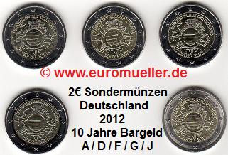 5x 2 Euro Sondermünze Deutschland 2012 Bargeld ADFGJ