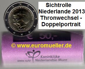 Thema: Thronwechsel - Doppelportät Beatrix / Willem links Auflage in original Rollen nur 2500 Stück ! Der Rest der Münzen wurde in sogenannten Händlerbeuteln a 100 Münzen verausgabt