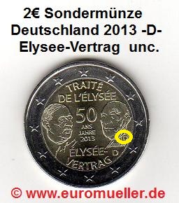 2 Euro Sondermünze Deutschland 2013 Elysee Vertrag D