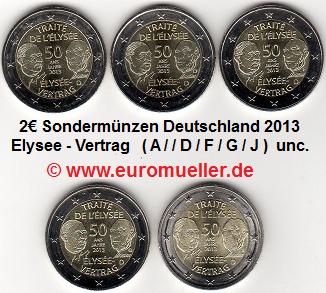 5x 2 Euro Sondermünze Deutschland 2013 Elysee Vertrag