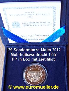 2 Euro Sondermünze Malta 2012 Mehrheitswahlrecht 1887 PP