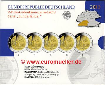 5x 2 Euro Sondermünzen Deutschland 2013 Maulbronn PP