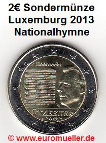 2 Euro Sondermünze Luxemburg 2013 Nationalhymne