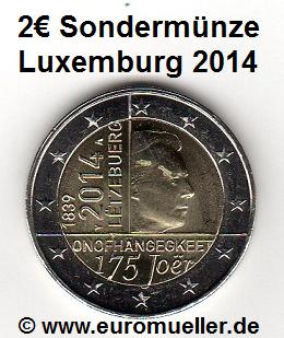2 Euro Sondermünze Luxemburg 2014 Unabhängigkeit