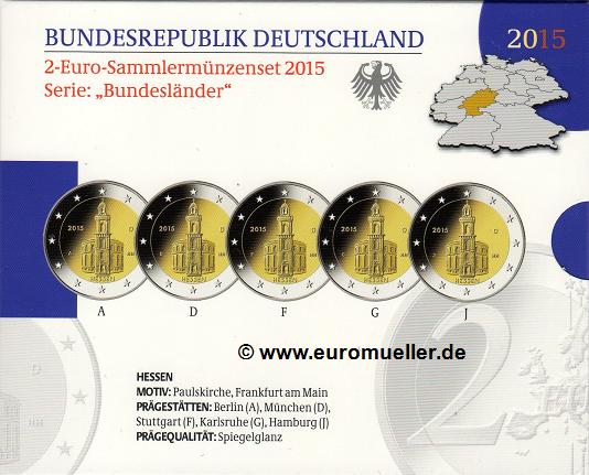 5x 2 Euro Sondermünzen Deutschland 2015 Hessen PP