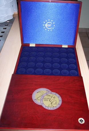 da auf der Frontseite der Kassette die erste verausgabte 2 Euro Sondermünze 2004