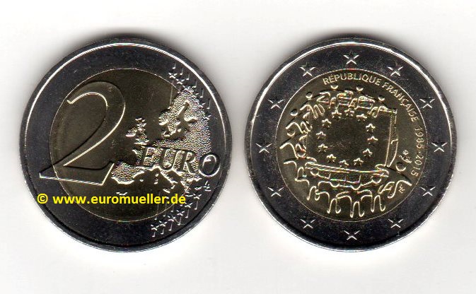 2 Euro Sondermünze Frankreich 2015 Flagge