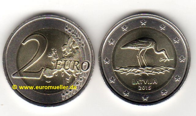2 Euro Sondermünze Lettland 2015 Storch