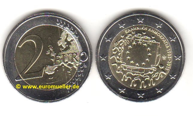 2 Euro Sondermünze Griechenland 2015 Flagge