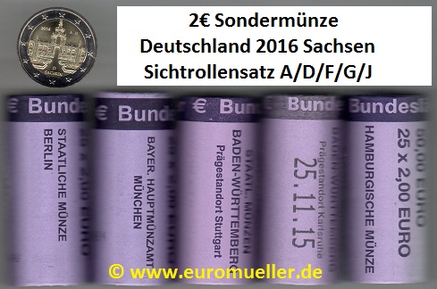 5 Rollen Deutschland 2 Euro Sondermünze 2016 Sachsen
