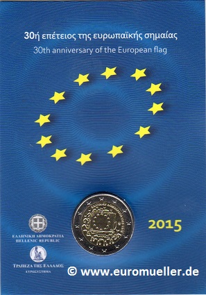 2 Euro Sondermünze Griechenland 2015 bu. Flagge