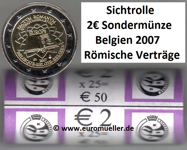 Rolle 2 Euro Sondermünze Belgien 2007 RV