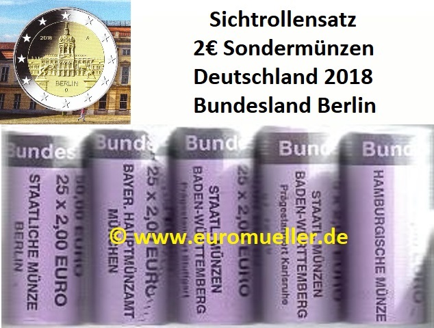 5 Rollen 2 Euro Sondermünze Deutschland 2018 Berlin