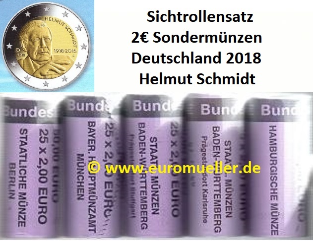 5 Rollen 2 Euro Sondermünze Deutschland 2018 Schmidt