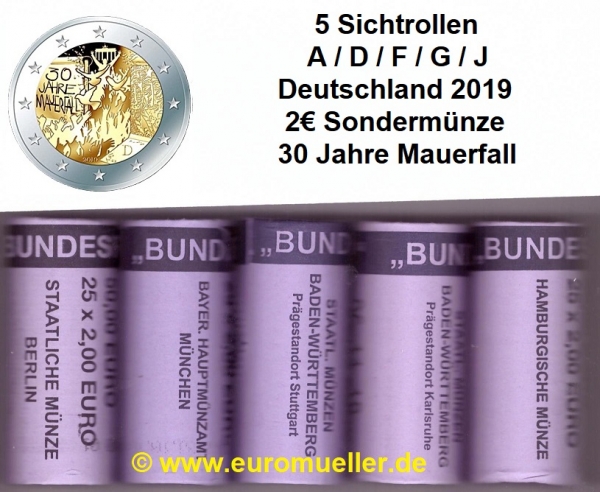 5 Rollen 2 Euro Sondermünze Deutschland 2019 Mauerfall