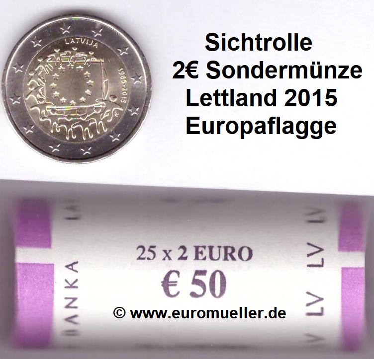 Rolle 2 Euro Sondermünze Lettland 2015 Europaflagge