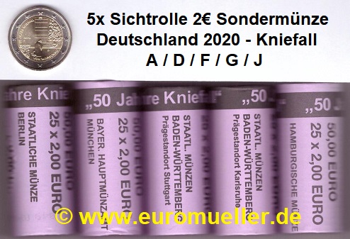 5 Rollen 2 Euro Sondermünze Deutschland 2020 Kniefall