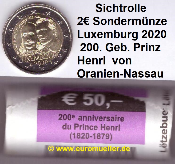 Rolle 2 Euro Sondermünze Luxemburg 2020 Prinz Henri