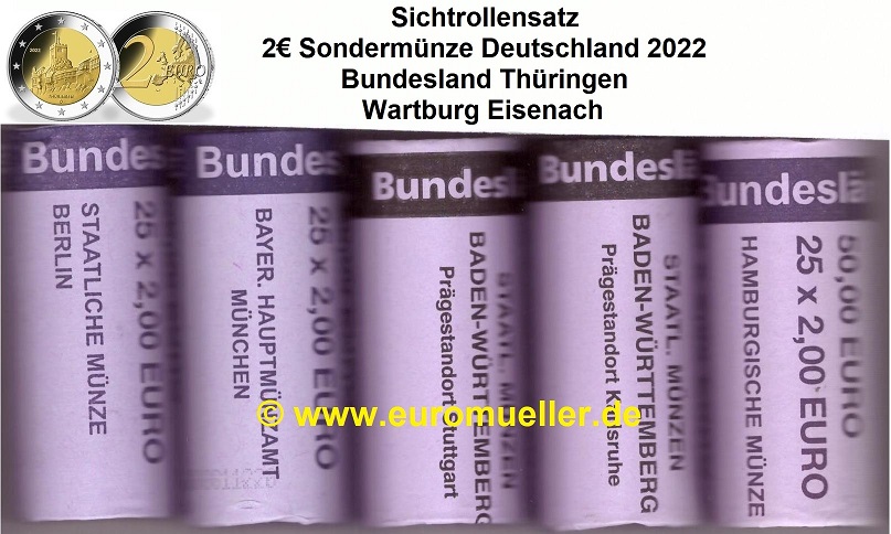 5 Rollen 2 Euro Sondermünzen Deutschland 2022 Thüringen