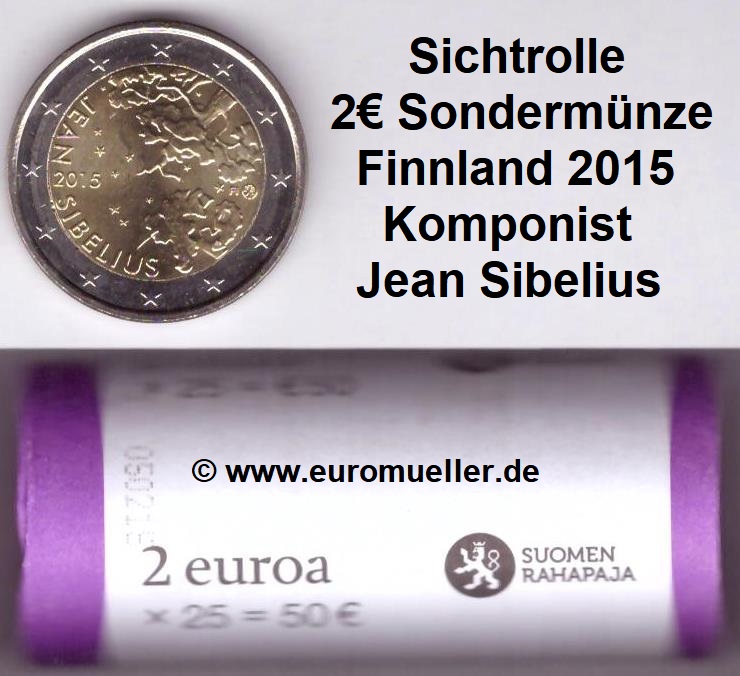 Rolle 2 Euro Sondermünze Finnland 2015 Sibelius