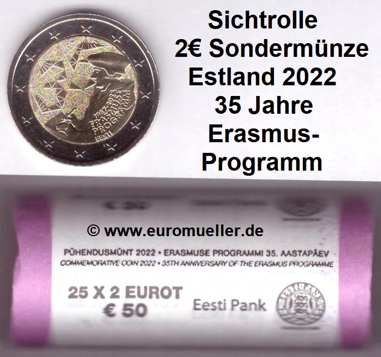 Rolle 2 Euro Sondermünze Estland 2022 Erasmus