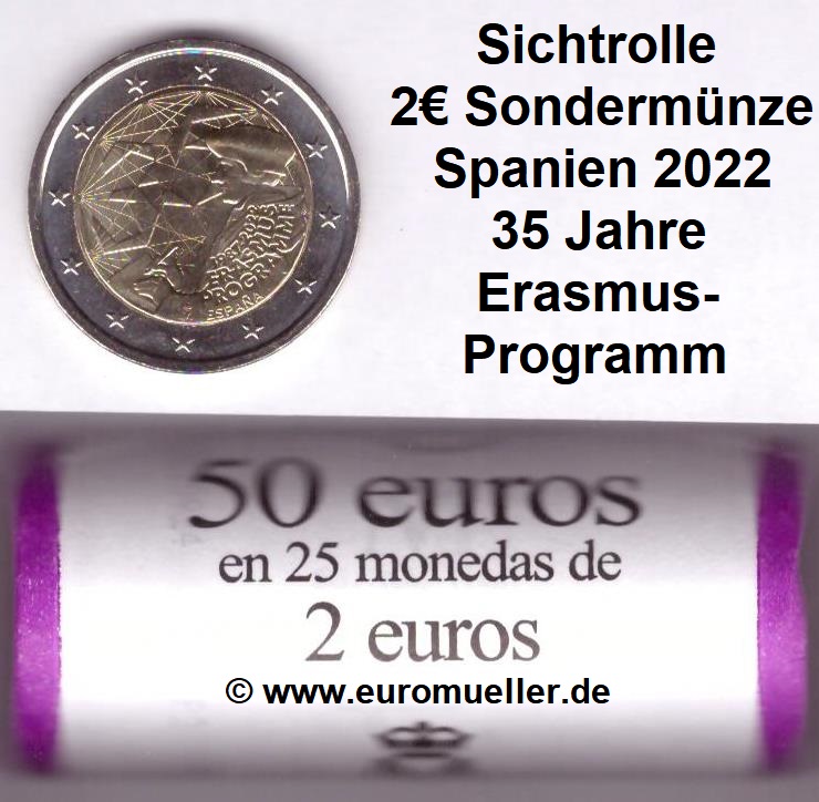 Rolle 2 Euro Sondermünze Spanien 2022 Erasmus