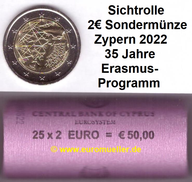 Rolle 2 Euro Sondermünze Zypern 2022 Erasmus