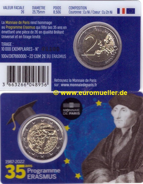 2 Euro Sondermünze Frankreich 2022 Erasmus bu.