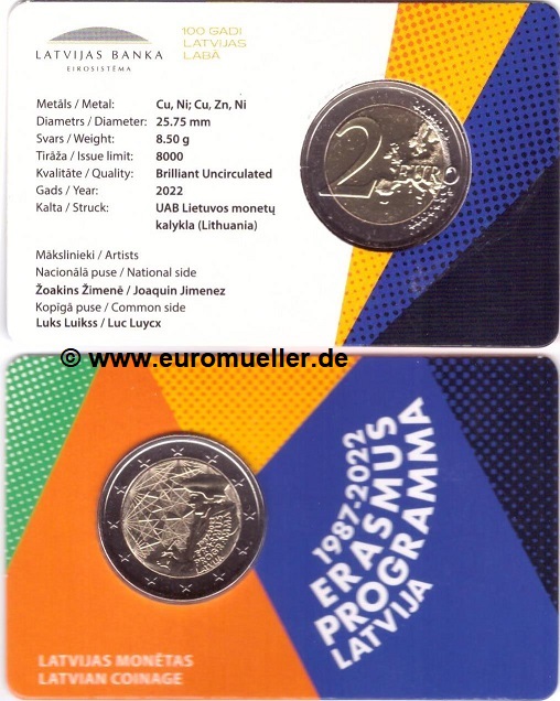 2 Euro Sondermünze Lettland 2022 Erasmus bu.