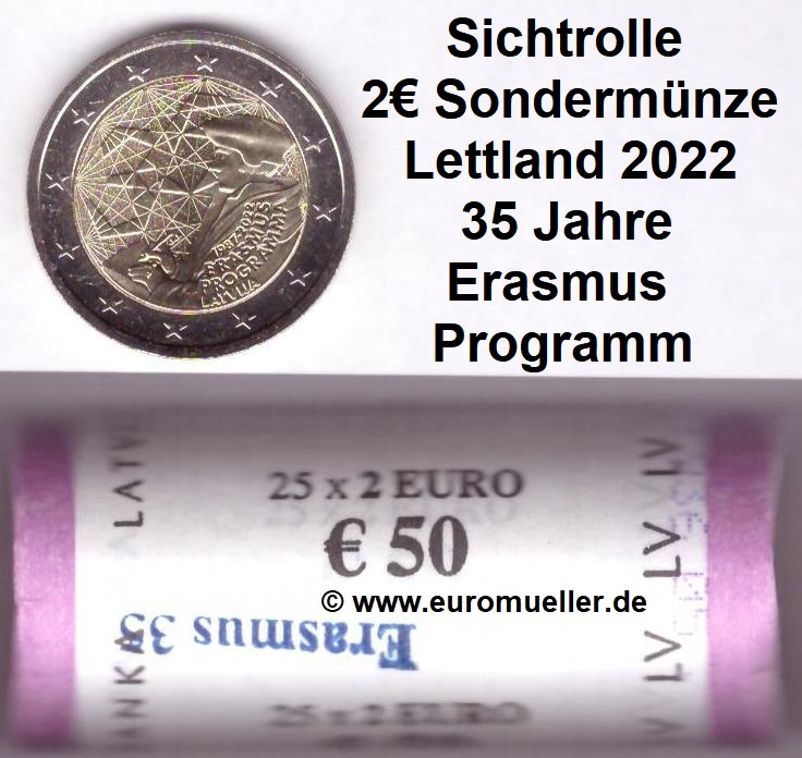 Rolle 2 Euro Sondermünze Lettland 2022 Erasmus
