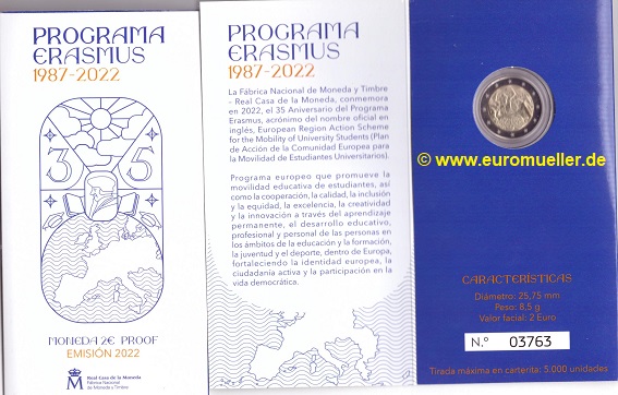 2 Euro Sondermünze Spanien 2022 Erasmus PP
