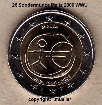2 Euro Sondermünze Malta 2009 WWU