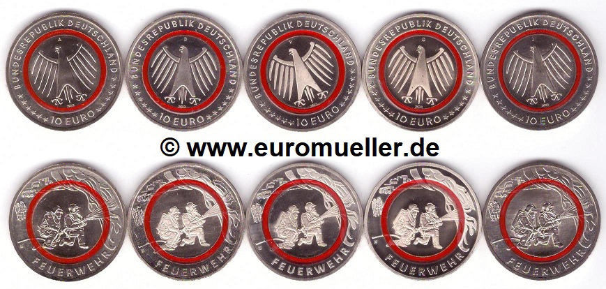 5x 10 Euro Deutschland 2023 Feuerwehr