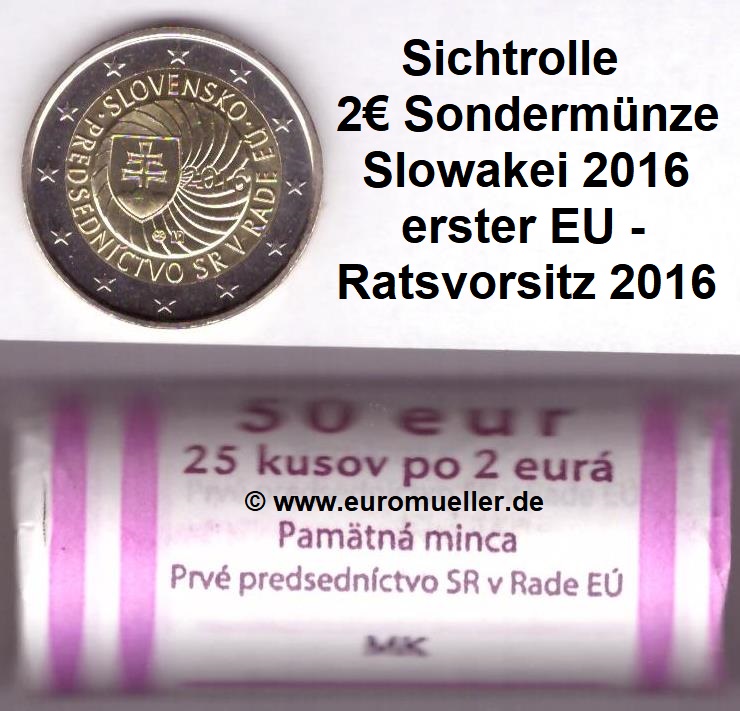 Rolle 2 Euro Sondermünze Slowakei 2016 EU-Vorsitz