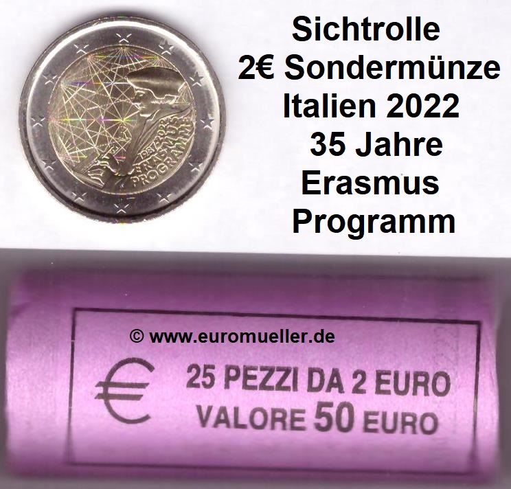 Rolle 2 Euro Sondermünze Italien 2022 Erasmus