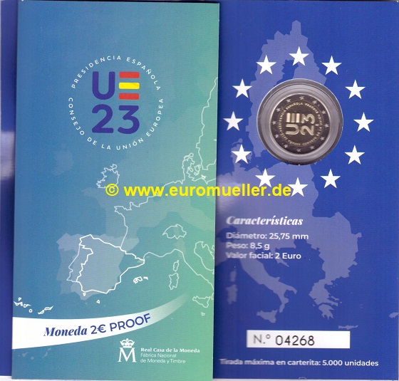 2 Euro Sondermünze Spanien 2023 EU-Vorsitz PP