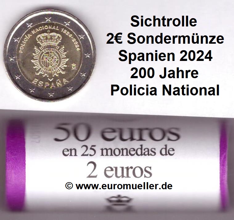 Rolle 2 Euro Sondermünze Spanien 2024 Policia National