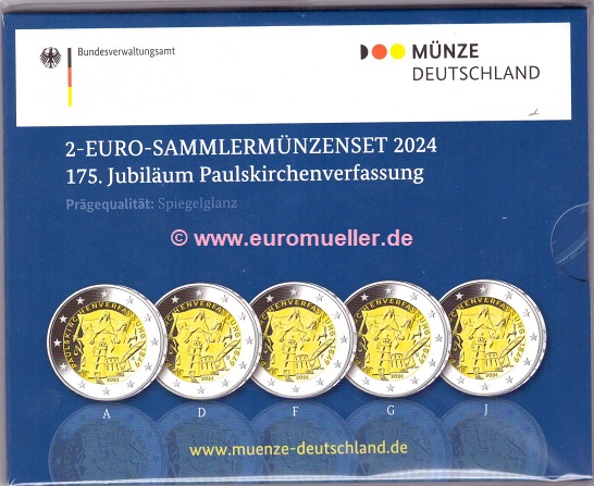 alle 5 Münzen mit den Prägebuchstaben A/D/F/G/J