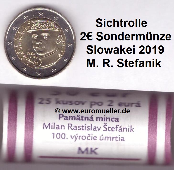 Rolle 2 Euro Sondermünze Slowakei 2019 Stefanik
