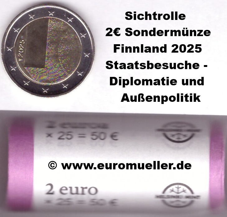 Rolle 2 Euro Sondermünze Finnland 2025 Staatsbesuche