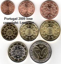alle 7 Kursmünzen 1 Cent - 1 Euro sowie die 2 Euro Sondermünzen Lusophonie
